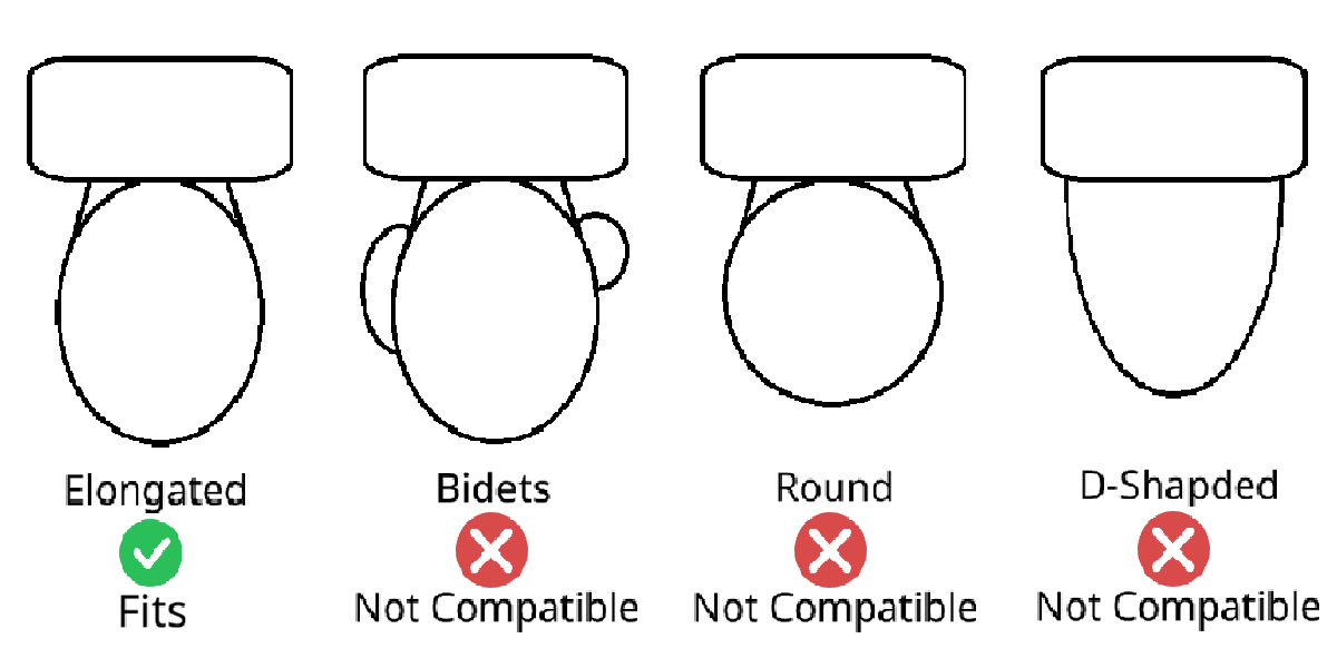 Round toilets and toilets with integrated bidets are not supported.